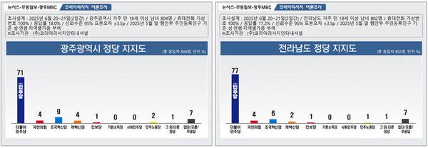 뉴시스 보도에 따르면, 여론조사 전문기관인 코리아리서치인터내셔널에 의뢰, 지난 20일부터 21일까지 이틀 간 광주와 전남에 거주하는 만18세 남녀를 대상으로 했다.