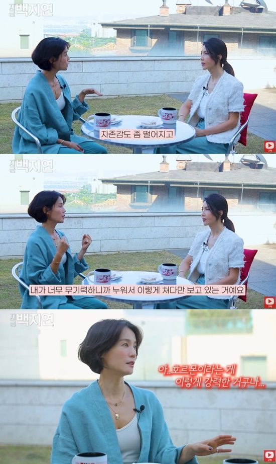 이어 "저는 우울이라는 것을 몰랐는데, 그런 느낌이 뭔지 알겠더라. 자존감이 떨어진다. 그리고 해야 할 일들이 막 있는데, 내가 너무 무기력하니까 그냥 누워서 쳐다보고만 있게 된다. 심지어 책 쓸 때였는데도 그랬다. 요가를 하러 가는 것도 힘들었다. 요가 매트에 올라가서도 15~20분 만에 내려오고 그랬다.호르몬이라는 것이 이렇게 강력하구나 싶었다"고 얘기했다.