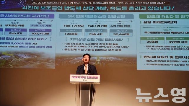 이 시장은 “원삼면 용인반도체클러스터에 122조원을 투자하는 SK하이닉스의 첫 번째 팹(Fab) 절반만 짓는 공사가 올해 2월 시작했는데 훌륭한 소·부·장 기업들이 이처럼 많이 들어왔다"며 "삼성전자가 360조원을 투자하는 이동·남사읍 첨단시스템반도체 국가산단까지 조성되면 참으로 많은 반도체ㆍAI 관련 기업들이 용인에 입주할 것으로 예상된다"고 말했다.