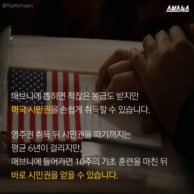 영주권, 시민권도 없는 외국인이 2년 이상 합법적으로 체류하면 미군에 입대하게 하여 시민권을 주는 제도