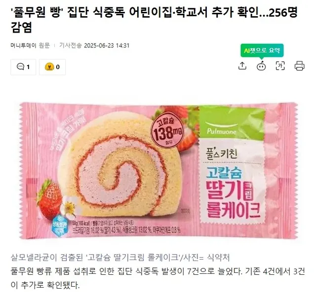 어린이집 학교 급식 납품 롤케이크에서 식중독 발생 ㄷㄷㄷ