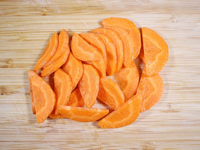양파는 채 썰고 당근은 반달 형태로 썰어요.