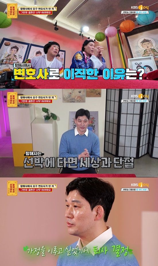 이수근이 항해사에서 변호사로 전향하게 된 계기를 묻자, 사연자는 "항해사는 세상과 단절된다. 배를 한 번 타면 6개월"이라며 항해사를 계속하면 결혼하기 힘들겠다는 생각이 들어 퇴사한 후 영어 공부를 위해 호주에 갔다가 로스쿨에 진학했다고 설명했다.