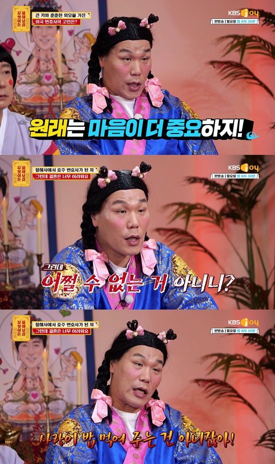 그는 한국에서 항해사로 일하다가 호주에 가서 로스쿨을 졸업하고, 현재는 외국 변호사로 열심히 생활 중이라고 자신을 소개했다.