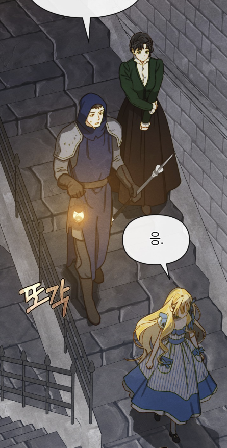 유모의 손을 잡고 지하로 내려가는 아가씨는