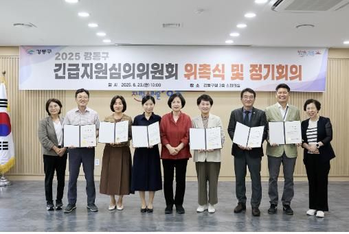 [한국미디어뉴스통신 박말희 기자] 강동구는 지난 23일, 위기가구의 생계유지를 위한 사회안전망인 ‘긴급 지원’ 제도의 안정적인 운영을 위해 ‘강동구 긴급지원심의위원회’의 위원 8명을 위촉했다.