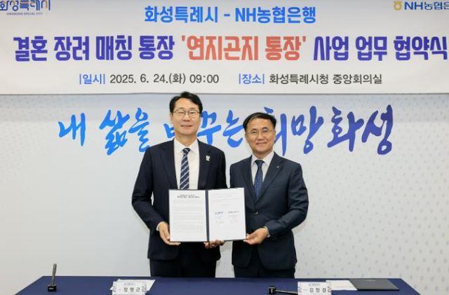 [파이낸셜경제=김영란 기자] 화성특례시는 24일 NH농협은행과 결혼 장려 매칭통장 ‘연지곤지 통장’ 사업의 원활한 추진을 위한 업무 협약을 체결했다고 밝혔다.