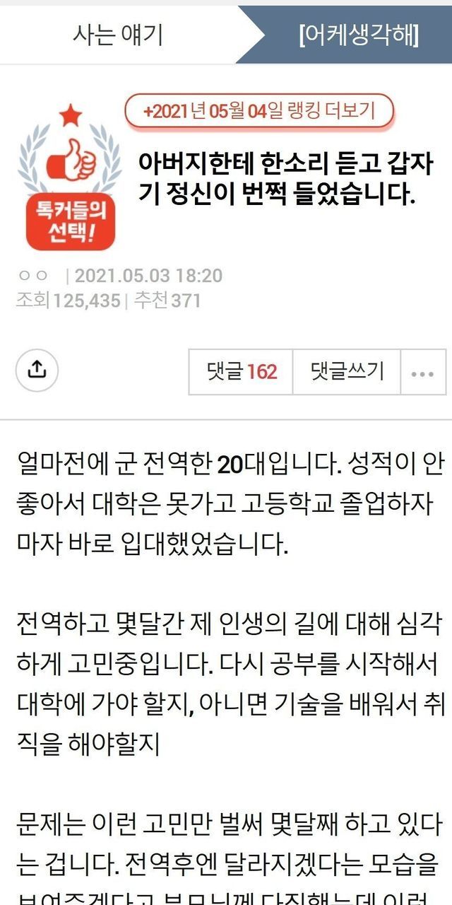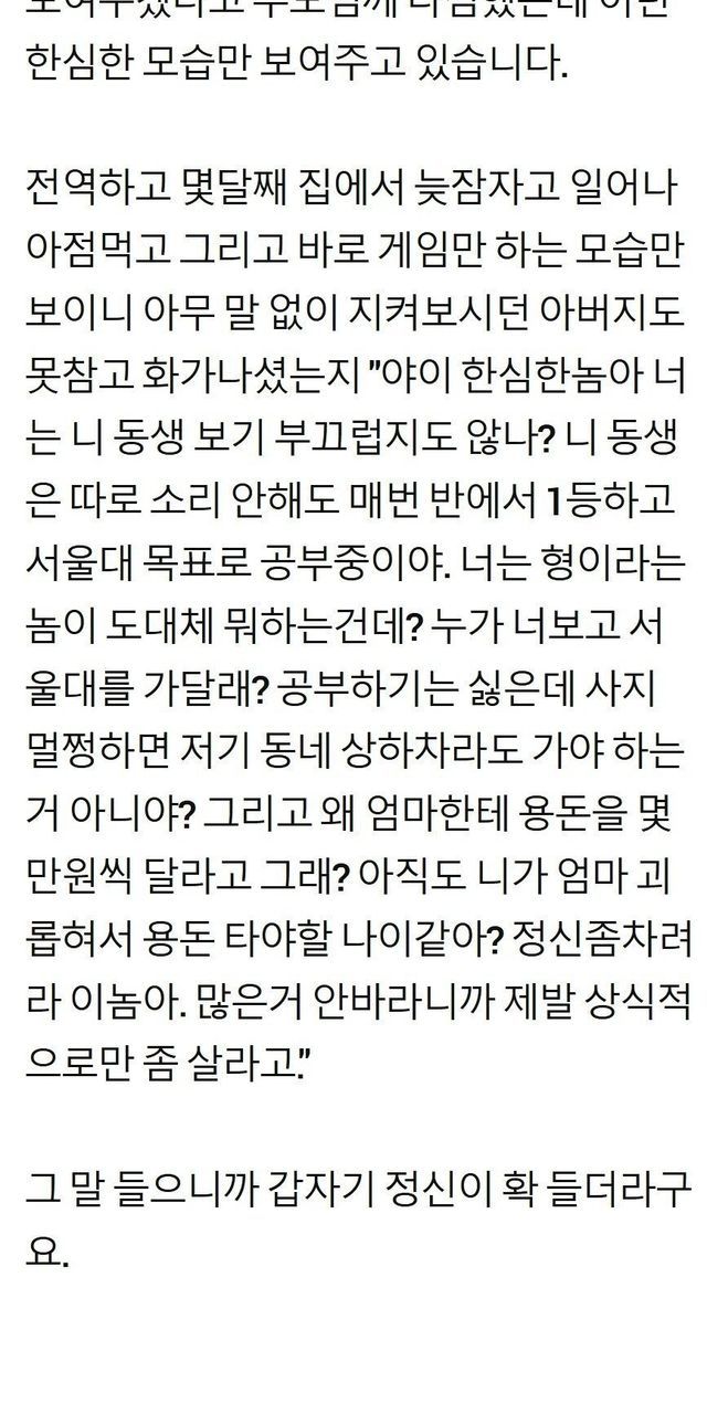 "아빠한테 한소리 듣고 정신이 번쩍듬"