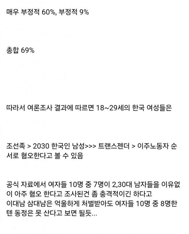 여론조사에서 이대녀 10명중에 8명이 이대남 삼대남을 혐오한다고 답변함