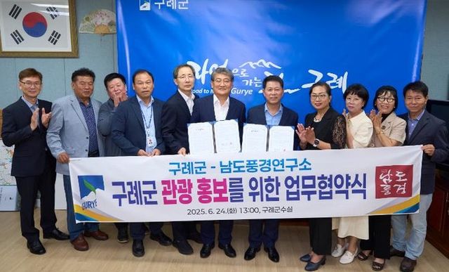 [파이낸셜경제=김영란 기자] 전남 구례군은 지난 6월 24일 오후 1시, 지역의 아름다운 자연경관과 문화자원을 널리 알리기 위해 남도풍경연구소와 업무협약을 체결했다고 밝혔다.