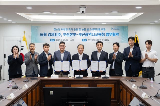 [파이낸셜경제=김영란 기자] 부산광역시교육청은 지난 23일 오후 2시 교육청 회의실에서 농협경제지주(농업경제대표이사 박서홍)와 농협부산본부(본부장 이수철)과 등이 참석한 가운데'청소년 아침밥 먹기 운동 및 쌀 소비촉진을 위한 업무협약(MOU)'을 체결했다.