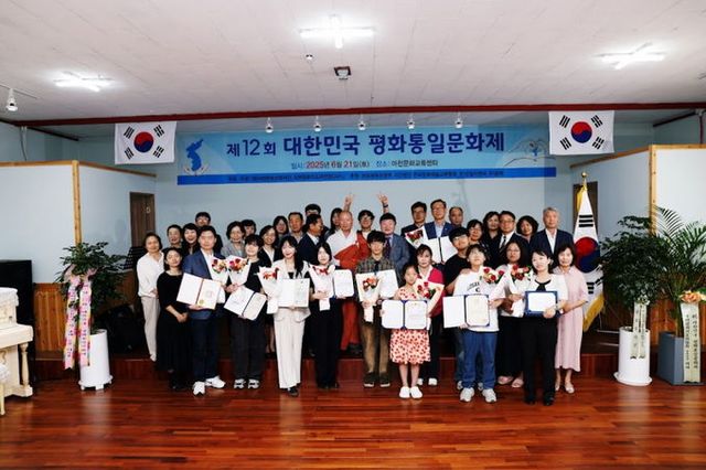 [와이뉴스] 재단법인 아천문화교류재단(ACEF)과 국제평화지도자연합(IAPL)이 주최-주관한 ‘제12회 대한민국 평화통일문화제’가 21일 오후 3시 아천문화교류센터에서 시상식이 개최됐다. 이날 행사는 통일에 대한 올바른 가치관을 심어주기 위해 문화예술 부문의 우수한 인재들을 발굴 시상하고 있으며, 올해로 12회를 맞았다.