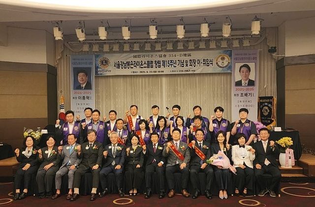 [전국=위키트리 최학봉 선임기자] 국제라이온스협회 354-D지구 강남봉은라이온스클럽은 6월 23일(월) 오후 6시, 서울시 강남구 청담동 리베라호텔 3층 몽블랑홀에서 클럽 창립 15주년 기념식 및 2025~2026년 회기 회장 이·취임식을 개최했다.