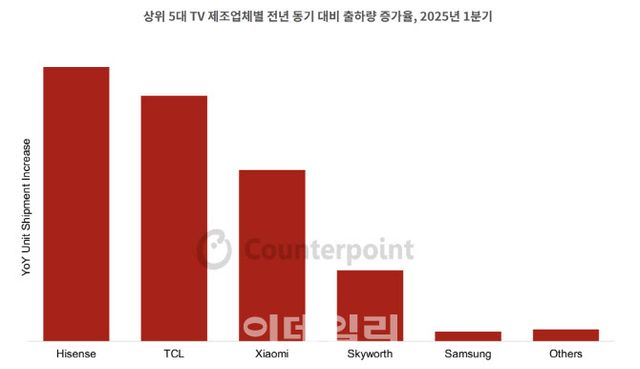 중국 시장의 매출 성장과 더불어 기타 주요 지역 시장에서의 점유율 확대는 하이센스와 TCL의 전체 시장 점유율 상승으로 이어졌다. 두 기업 모두 전년 대비 세 자릿수의 출하량 증가율을 기록했으며, 하이센스와 TCL의 매출 역시 각각 87%, 74% 증가했다.