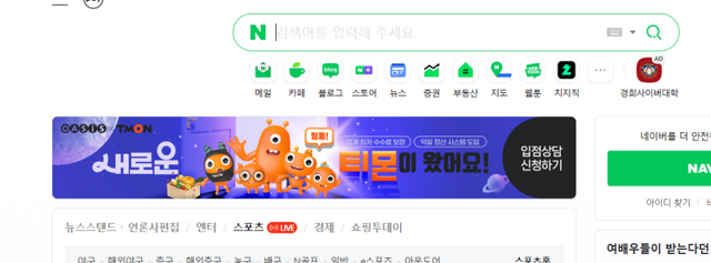 24일 이커머스 업계에 따르면 티몬은 네이버 포털사이트 메인 페이지에 광고를 시작했다. '띵똥, 새로운 티몬이 왔어요!'란 문구와 함께 업계 최저 수수료 보장과 익일 정산 시스템 도입을 적용했다. 이어 입점 상담 버튼까지 마련하면서, 적극적인 홍보에 나섰다.