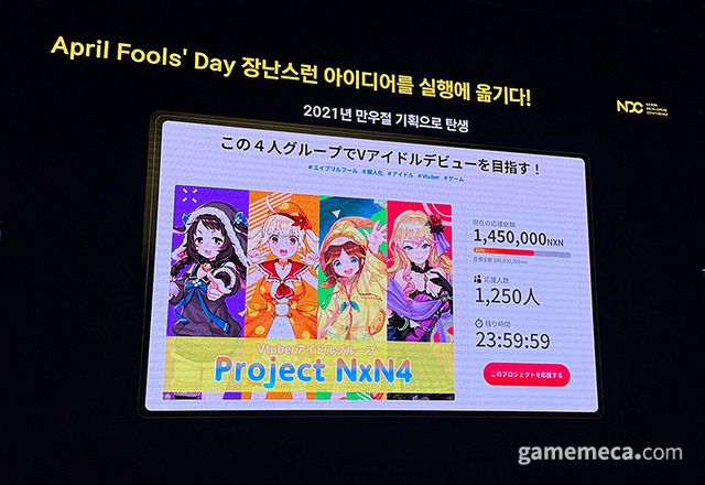 ▲ 그 시작은 2021년 만우절에 선보인 넥슨 게임 가상 걸그룹 프로젝트 (사진: 게임메카 촬영)