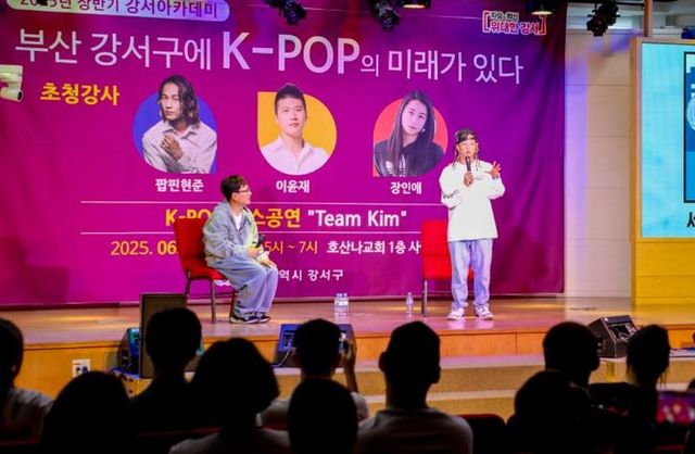 “부산 강서구에 K-POP의 미래가 있다”는 주제로 진행됐으며, K-POP 산업을 이끌어온 1세대 스트릿댄서 팝핀현준, 2세대 작곡가 이윤재, 3세대 트레이너 장인애가 강사로 초청돼 대담 형식으로 강연을 펼쳤다.