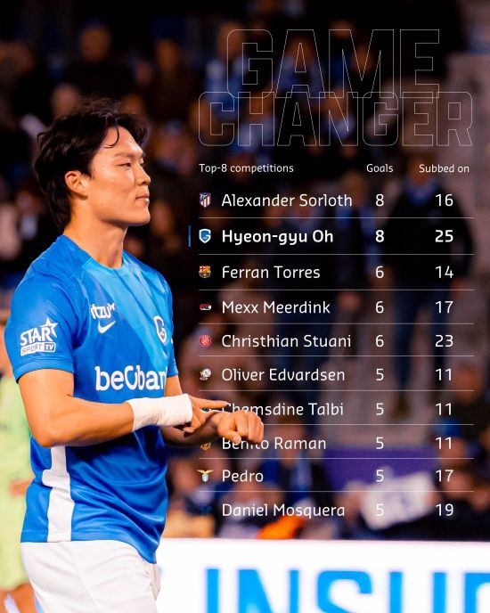오현규는 당시 리그에서 이번 시즌 9골을 넣었는데 8골이 교체로 나와 넣은 골이다. 31라운드까지 그는 평균적으로 헹크에서 48분당 1골씩 넣었다.