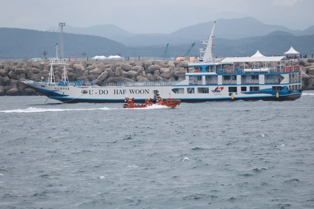 이날 훈련에는 행정안전부, 제주특별자치도, 소방, 서귀포시, 한라병원, 해양재난구조대 등 10개 기관 관계자 200여 명이 참여했다. 함정 6척, 항공기 1대, 민간선박 3척 등도 동원됐다.
