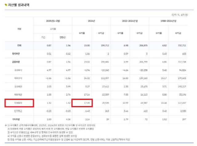 다만 국민연금은 이 보통주 295억원을 이미 손실처리한 것. 그러나 작년 국민연금의 대체투자 수익률은 17.09%로 두자릿수를 넘어섰다. 홈플러스 외에 다른 대체투자 자산에서 수익이 발생한 결과다.