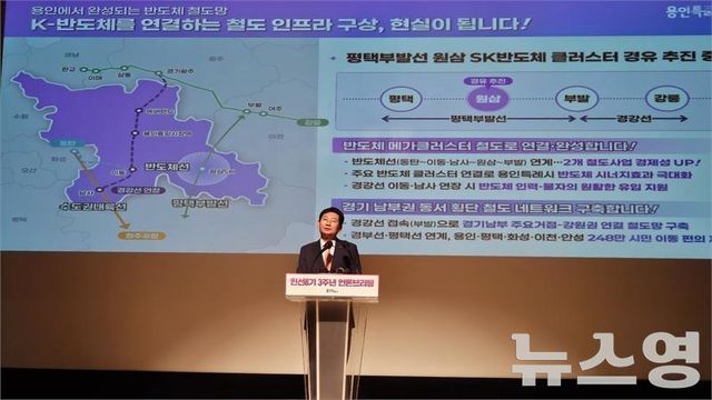 이상일 시장은 SK하이닉스가 122조원을 투자해 처인구 원삼면에 조성하는 용인 반도체클러스터 일반산업단지 쪽에 제4차 국가철도망 계획에 반영된 평택부발선(59.4㎞)을 경유하도록 하고, 용인특례시가 제5차 국가철도망 계획에 반영하기 위해 화성시와 함께 노력하는 반도체선인 동탄부발선(동탄~용인남사·이동~용인원삼~이천부발)을 원삼에서 평택부발선과 만나게 하는 방안에 대해서도 설명했다.