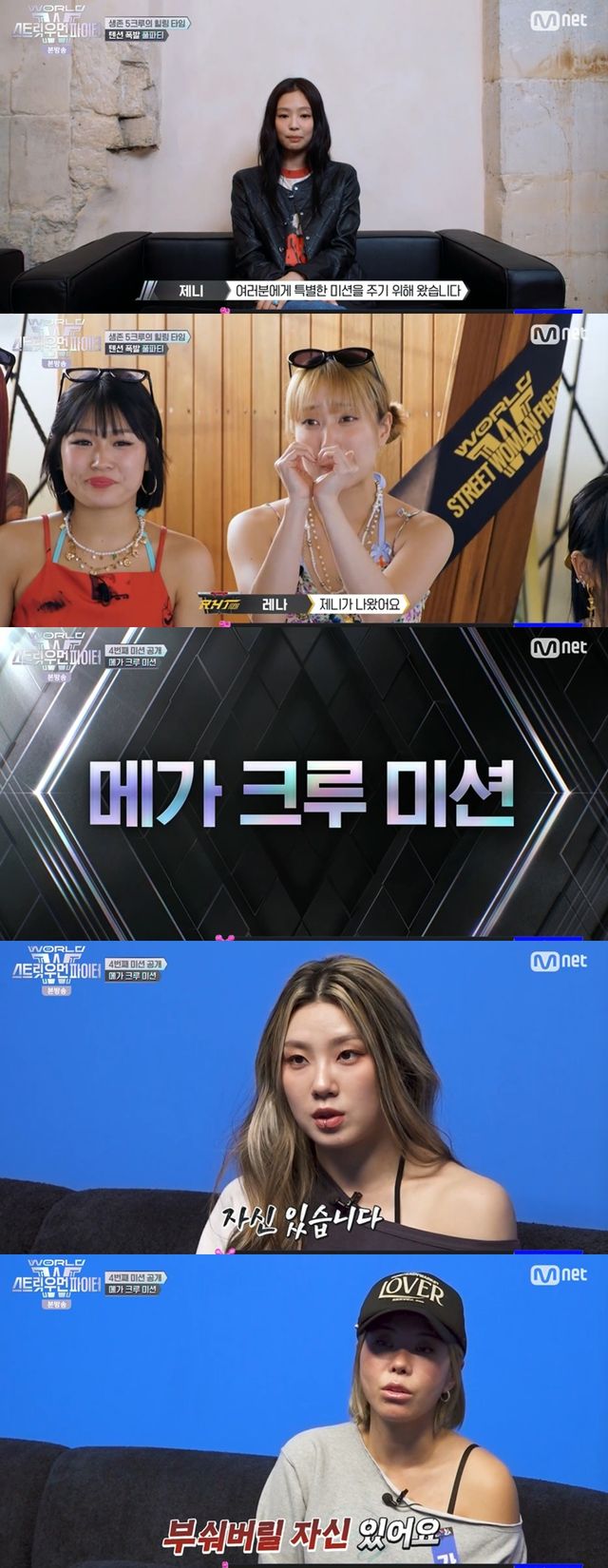 풀파티를 즐기던 크루들 앞에 '스우파'의 시그니처 미션인 '메가 크루 미션'이 공개됐다. 특히 제니가 해당 미션을 소개하는 영상에 깜짝 등장하자 현장은 놀라움과 환호로 가득 찼다.