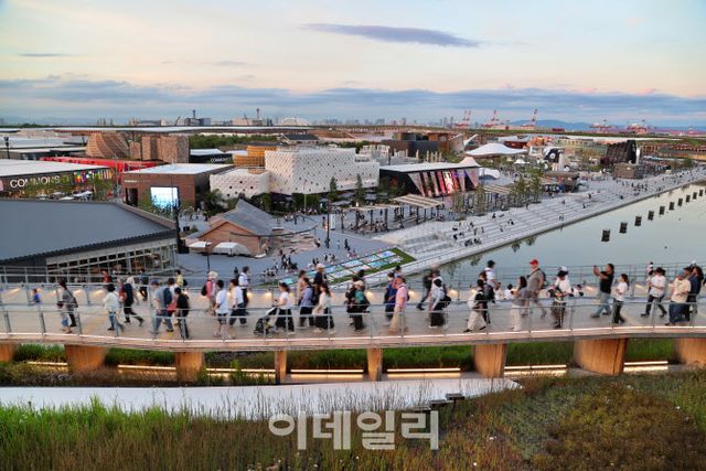 [오사카(일본)=글·사진 이데일리 강경록 기자] 전철이 스카이브리지를 따라 오사카만(灣)을 가로지르는 순간, 창밖으로 한 섬이 모습을 드러낸다. 이름부터 ‘꿈의 섬’을 뜻하는 유메시마(夢洲). 그 꿈의 시작은 불편한 진실에서 출발했다. 준설토와 산업 폐기물이 퇴적된 매립지, 도시가 밀어낸 잔해들을 쌓아 만든 이 인공섬은 오랫동안 ‘도시의 뒷면’으로만 존재해 왔다. 그 유메시마가 이제는 세계의 미래를 이야기하는 ‘2025 오사카·간사이 엑스포’(엑스포)의 무대가 됐다.