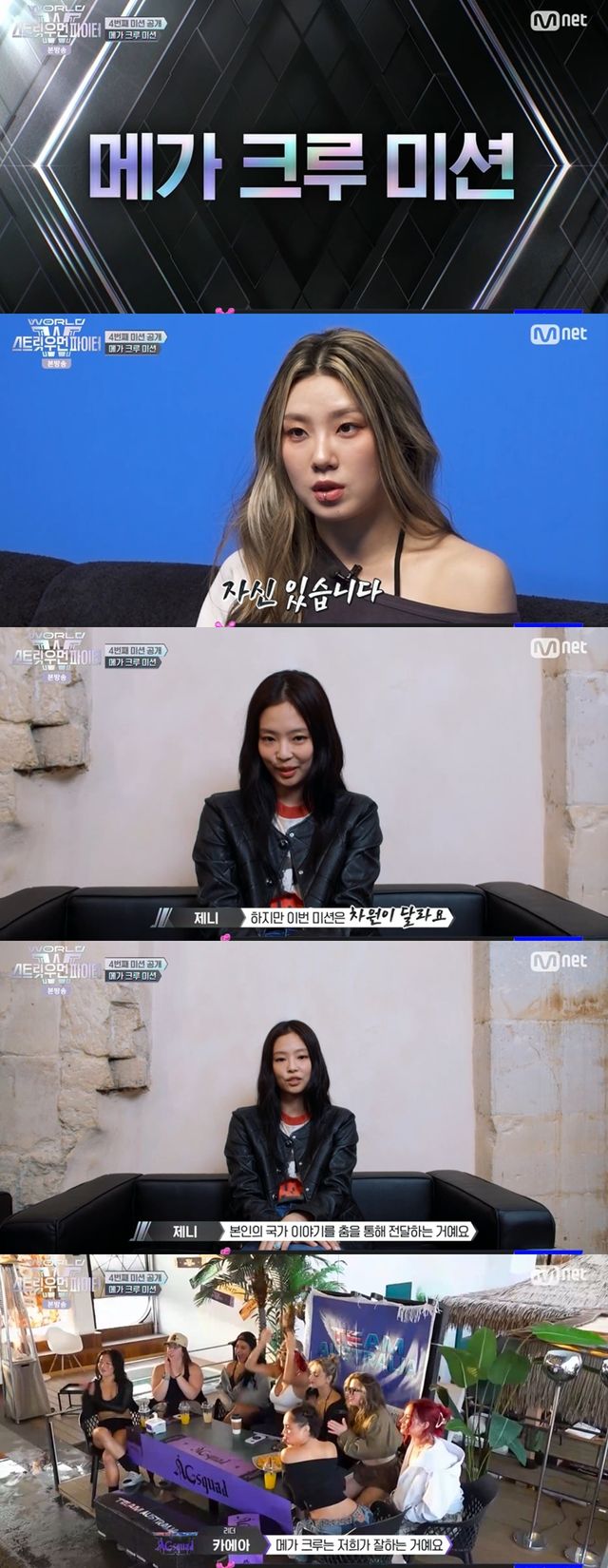 파티 분위기가 무르익을 무렵, 프로그램의 시그니처 미션인 '메가 크루 미션'이 공개됐다. 미션 전달자로 깜짝 등장한 인물은 월드스타 제니. 예상치 못한 등장에 현장은 환호로 가득 찼다. 특히 평소 제니의 팬임을 밝혔던 RH도쿄의 레나는 "제니가 나왔다. 너무 기뻤다"며 손으로 하트를 만들었다.