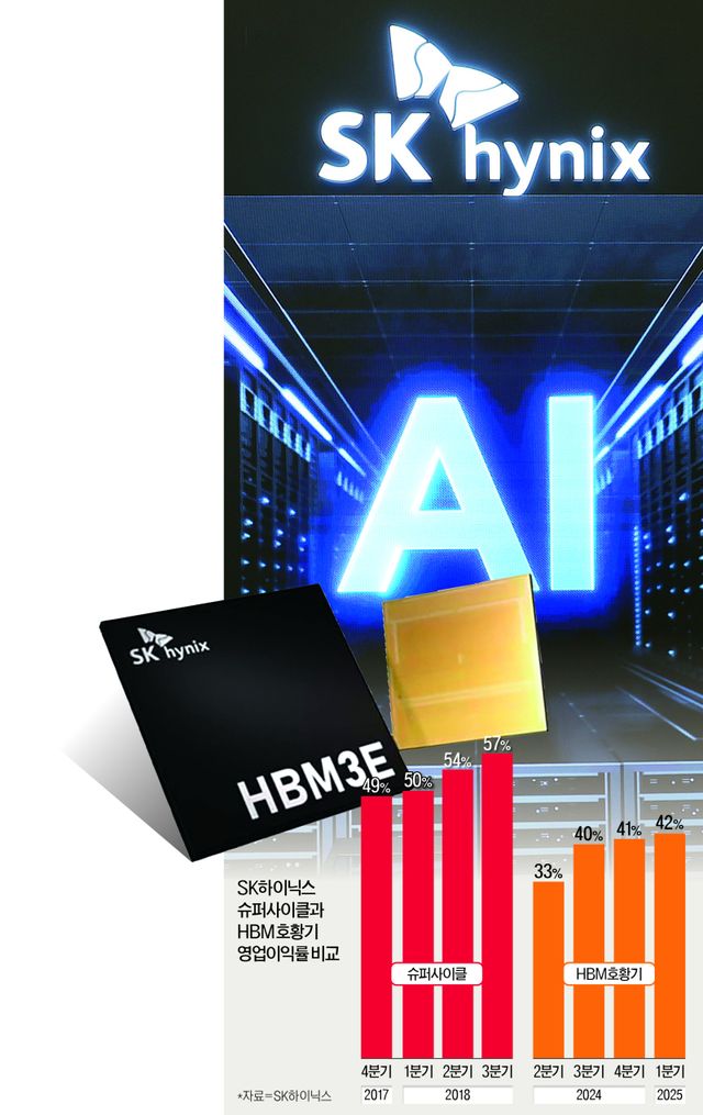 SK하이닉스가 고대역폭 메모리(HBM)의 날개를 달고 믿을 수 없는 고수익을 내고 있다. 적수가 없는 HBM 시장에서 물량을 싹쓸이하며 영업이익률이 2018년 ‘반도체 슈퍼사이클’만큼이나 올라왔다. D램 반도체 시장에서 삼성전자의 아성을 무너뜨린 SK하이닉스는 더 높은 곳을 바라보고 있다.