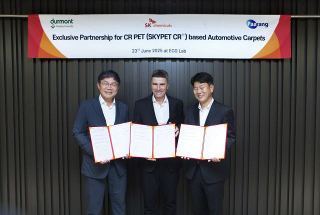 삼사는 전략적인 개발 협력을 통해 SK케미칼의 차별화된 CR PET 소재 솔루션을 활용해 차량 매트에 최적화된 원사 제조와 완제품 매트까지 성공적으로 양산 개발을 완료한 바 있다. 제품의 공급과 본격적 시장 확대를 위해 이번 독점 파트너십 협약을 체결하게 되었다.