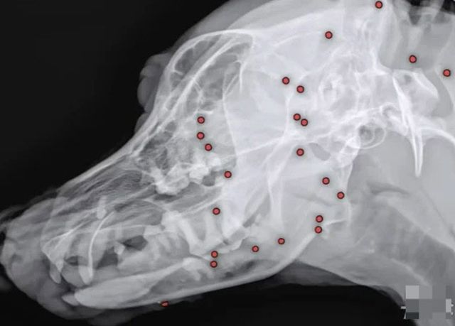 25일 VIP동물의료센터 측에 따르면 최근 도그어스플래닛에서 구조 후 해외 입양을 준비하던 백구 한 마리에 대한 건강검진을 했다가 충격적인 결과를 보게 됐다. 백구의 몸에 70개가 넘는 산탄총 파편이 박혀 있던 것이다.