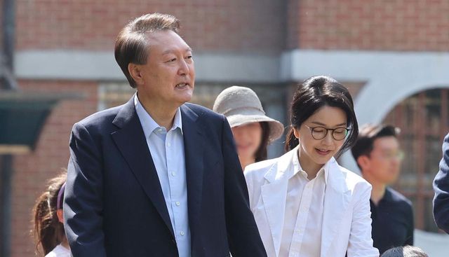윤석열 전 대통령과 김건희 여사가 제21대 대통령 선거일인 3일 오전 서울 서초구 원명초등학교에 마련된 서초4동제3투표소에서 투표를 하기 위해 투표소로 향하고 있다. / 뉴스1(공동취재)