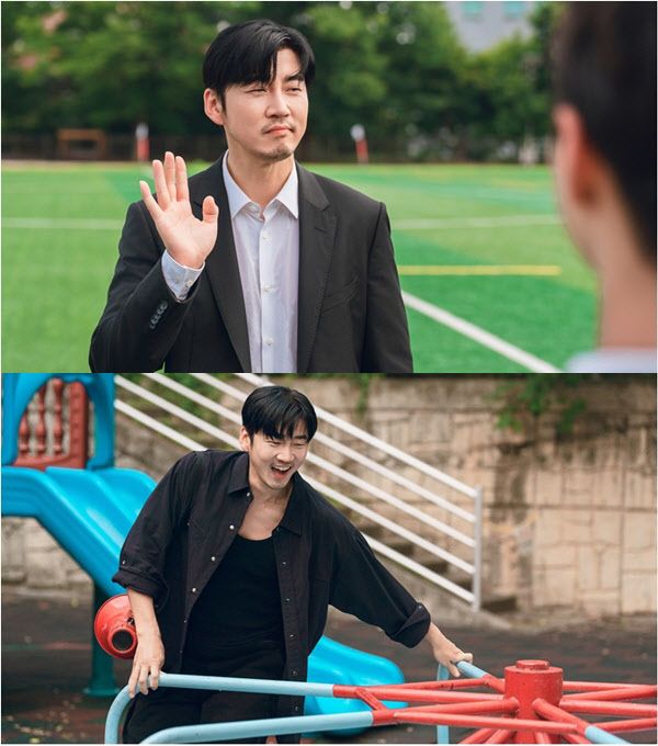 또 다른 스틸 속 주가람은 빙글빙글 돌아가는 유아용 놀이기구에 심취한 모습이다. 이처럼 윤계상은 다이내믹한 표정으로 ‘천의 얼굴’이라는 별명을 증명하며, 괴짜 감독 ‘주가람’으로 완벽 변신한 모습이다.