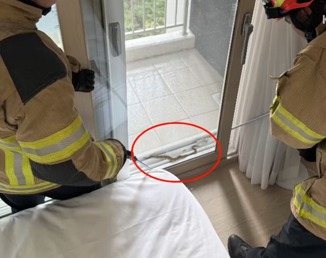 25일 KBS 보도에 따르면 지난 16일 오후 5시쯤 양양군 소재 호텔 16층 객실에서 "뱀이 있다"는 투숙객 신고가 접수됐다. 현장에 출동한 소방대원들은 객실 내부 창틀에서 노란색 바탕에 검은 무늬가 있는 뱀 한 마리를 발견했다.