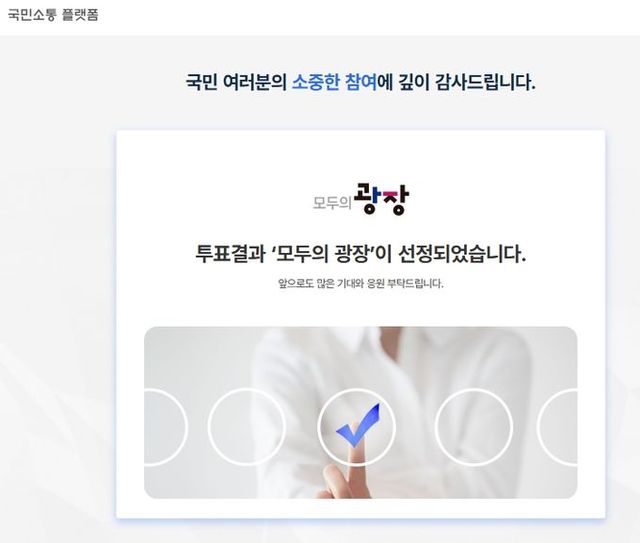 ‘모두의 광장’은 모든 국민과 정부가 수평적으로 소통하고 함께 미래를 설계해 나가는 열린 공간이라는 의미를 담고 있다.