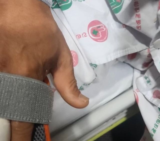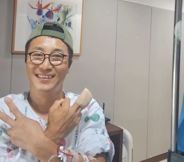 이어 수술을 받은 김병만의 모습이 공개돼 눈길을 끈다. 김병만은 손에 깁스를 하고 애써 웃음을 보이는 모습이다.
