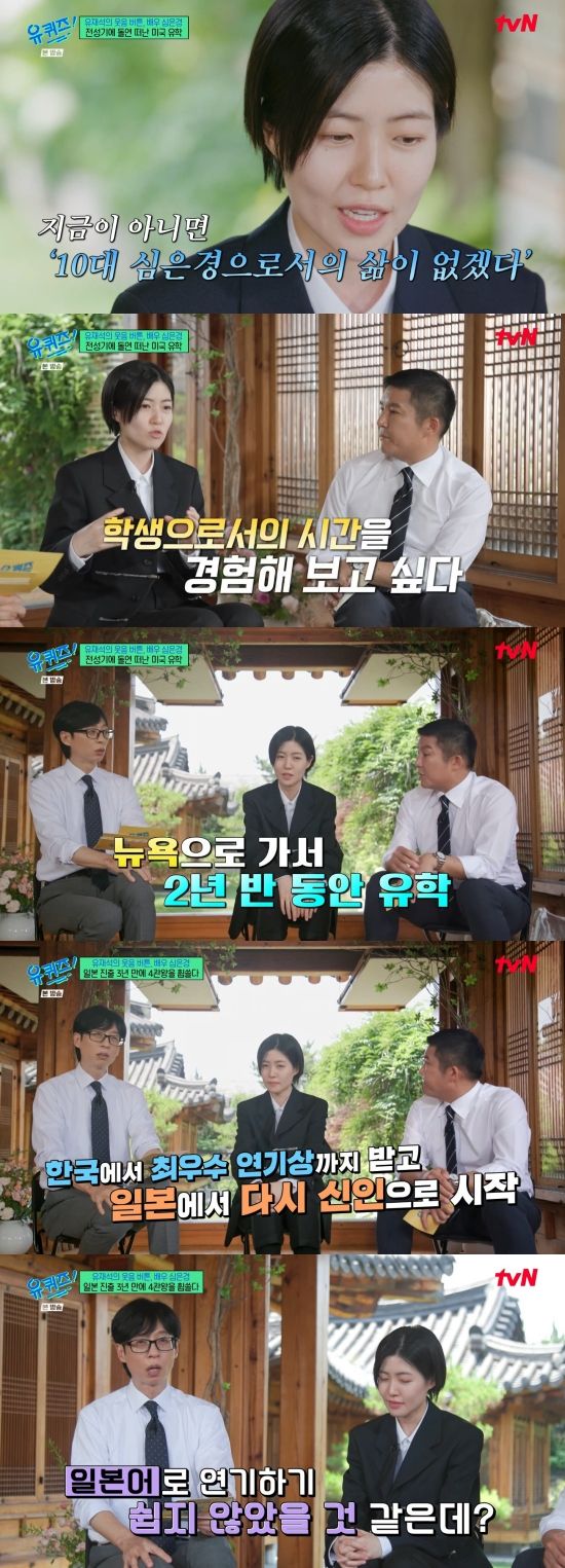 25일 방송된 tvN '유 퀴즈 온 더 블럭'(이하 '유퀴즈')에서는 심은경이 게스트로 출연한 가운데 뉴욕으로 유학을 떠나게 된 계기를 밝힌 장면이 전파를 탔다.