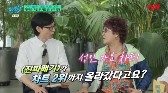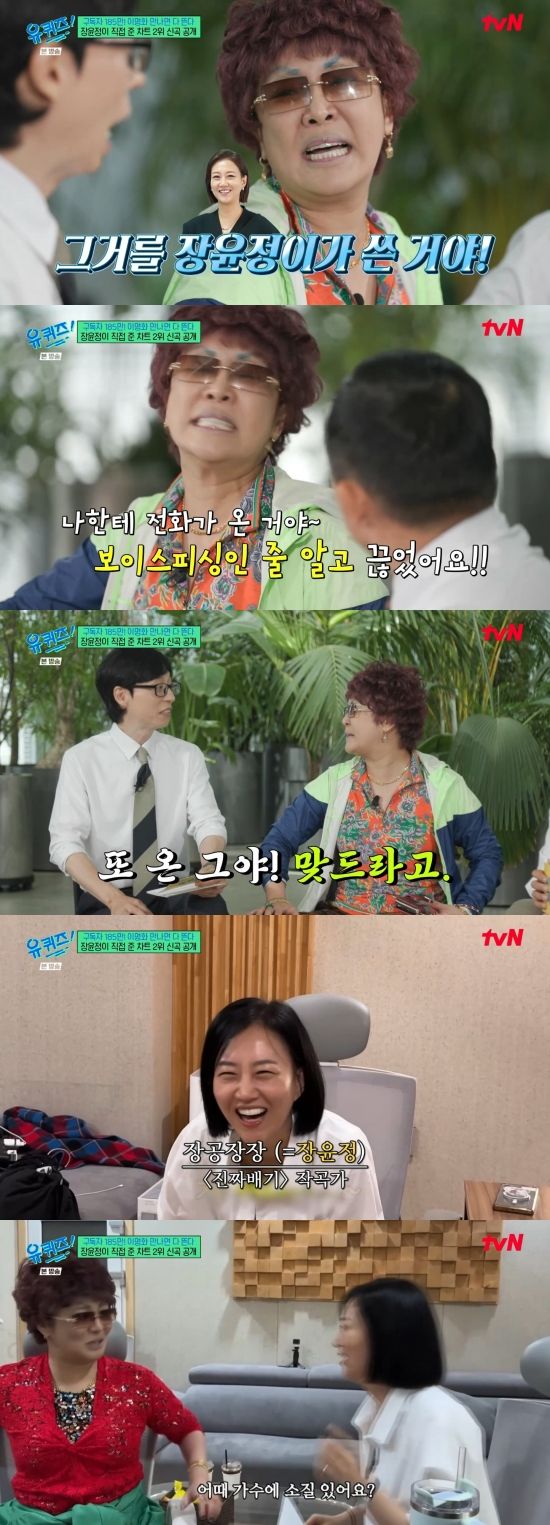 유재석은 "장윤정 씨가 이제 곡을 다른 분들한테 잘 안 주는 분인데 이명화 여사님한테 직접 전화해가지고"라며 감탄했다. 랄랄은 "그걸 글도 (장윤정) 자기가 다 쓴 거다. 작곡도 하고. 팬이라고 다 봤다고"라며 귀띔했다.