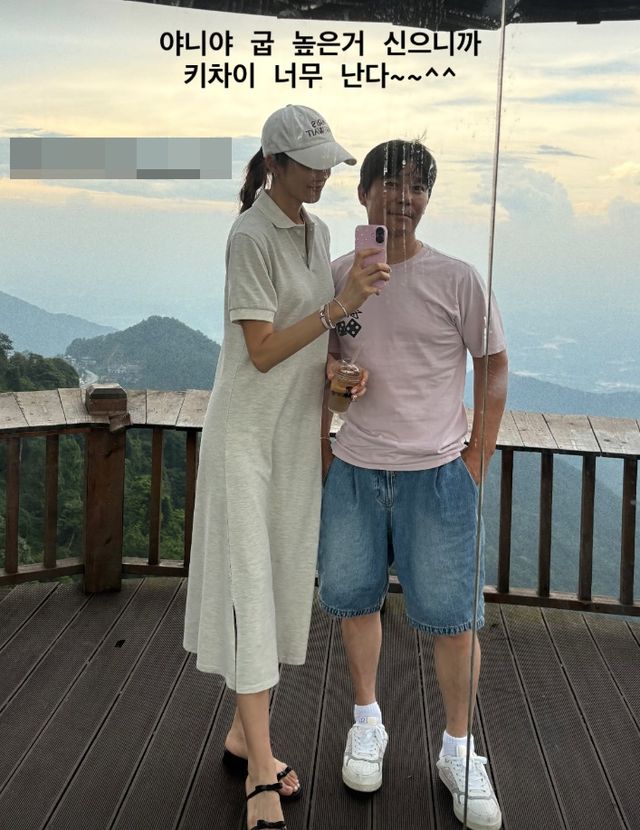 공개된 사진 속 임창정은 야외 전망대에서 서하얀과 함께 거울 셀카를 찍고 있는 모습. 편안한 반팔티와 반바지 차림의 임창정 옆에는 회색 롱 원피스에 굽 높은 샌들을 신은 서하얀이 나란히 서 있어 다정한 분위기를 자아낸다.