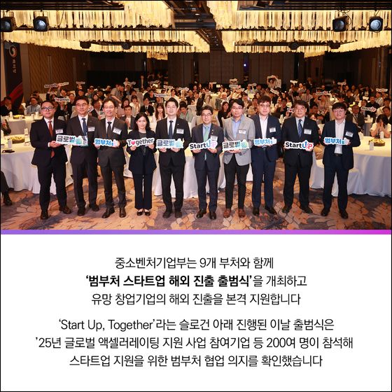 이번 행사에는 김성섭 중기부 차관을 비롯한 9개 부처 관계자, 국회 산업통상자원중소벤처기업위원회 소속 김동아 의원, 창업진흥원 및 프로그램별 주관기관, 올해 글로벌 액셀러레이팅 지원사업 참여기업 등 200여 명이 참석해 스타트업 지원을 위한 범부처 협업 의지를 확인했다.