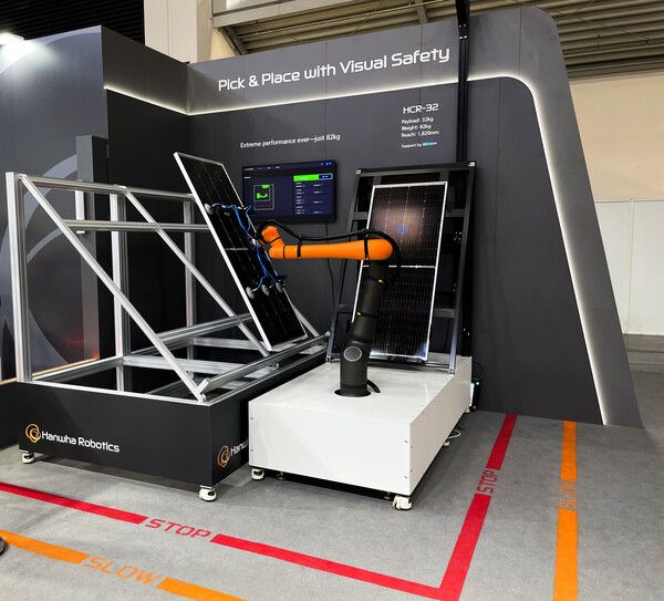 이번 전시회에선 고가반하중 협동로봇 ‘HCR-32’가 대중에 처음 공개됐다. 이 로봇은 최대 32kg에 이르는 물체를 들 수 있어 고중량 태양광 패널 또는 배터리 모듈을 들어 옮기는 데 적합하다.