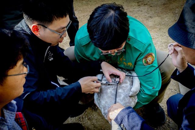 '여름'의 등에 GPS를 부착하는 모습. / 에버랜드 제공