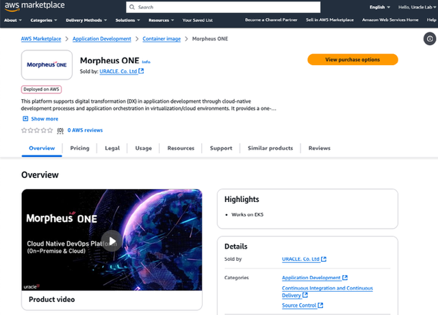 AWS 내 '모피어스' 소개 페이지. ⓒ 유라클