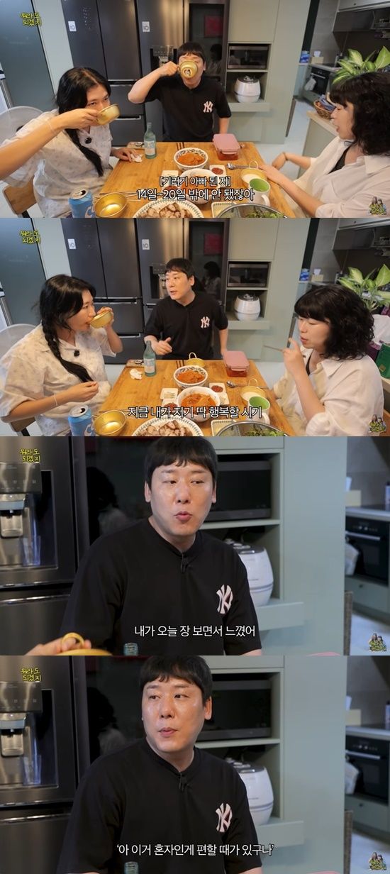 그는 "'아 이거 혼자인 게 편할 때가 있구나' 싶더라. 왜냐하면 먹고 싶은 거를 내 거 위주로 사지 않나. 다른 사람을 생각 안 해도 되지 않나. 그게 좀 좋더라"고 고백했다.