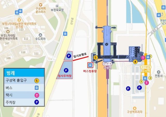 30일부터 신설되는 서측 출입구 정류장에는 총 7개 노선, 19대의 버스가 새롭게 운행할 예정이며(인근 보정차고지 정류장에 정차 예정인 1개 노선 포함), 이를 통해 용인시 보정동, 흥덕지구, 청현마을(영덕동), 풍덕천동, 성복동 등 인접 지역 주민들이 보다 편리하게 GTX-A를 이용할 수 있을 것으로 기대된다.