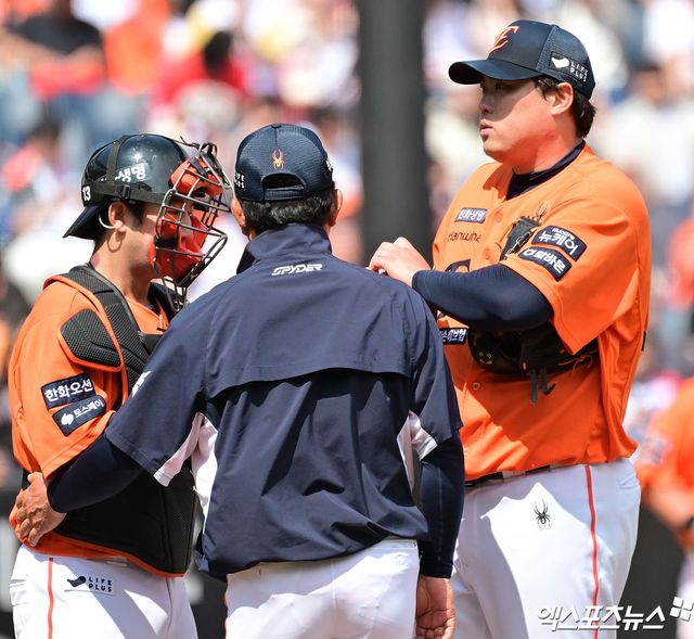 평소의 류현진이었다면 스스로 해결했을 상황. 그런데 안현민을 상대로 초구 볼을 던진 류현진이 몸 상태에 이상을 호소했다. 트레이닝 코치와 한참을 얘기하던 류현진은 결국 물러났고, 조동욱과 교체되며 일찍 경기를 일찍 마무리했다.