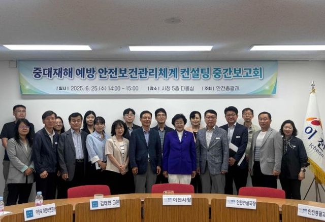 [와이뉴스] 이천시는 6월 25일 ‘중대재해 관련 안전보건관리체계 구축 컨설팅 용역’ 중간 보고회를 이천시청 5층 다올실에서 개최했다.