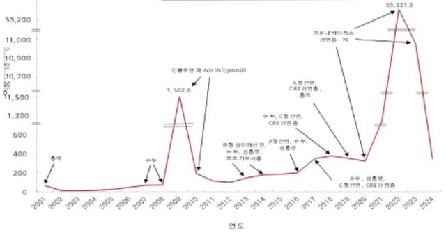 [와이뉴스] 질병관리청은 2024년 방역통합정보시스템(구 질병보건통합관리시스템)으로 신고된 법정감염병 현황을 분석하여 '2024 감염병 신고 현황 연보'를 발간했다.