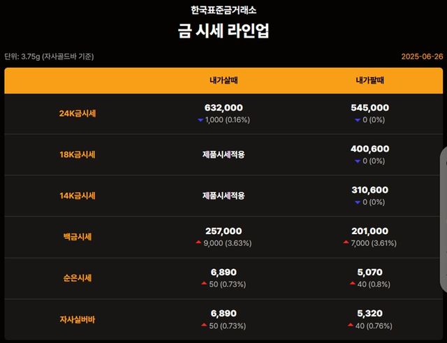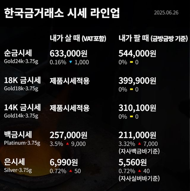 순금(24K) : 매입가 63만 3000원 / 매도가 54만 4000원