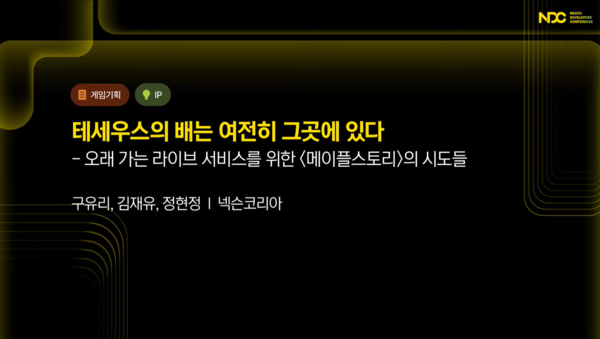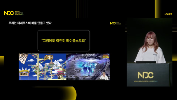 넥슨 ‘메이플스토리’가 26일 NDC 2025 마지막 세션 가운데 하나로 게임의 긴 여정의 이면에 담긴 ‘이용자 기대와 변화’에 대한 이야기를 전했다. ‘메이플스토리’ 구유리, 김재유, 정현정 기획자가 강연자로 나선 ‘테세우스의 배는 여전히 그곳에 있다 - 오래 가는 라이브 서비스를 위한 메이플스토리의 시도들’ 강연이 그 주인공이다.